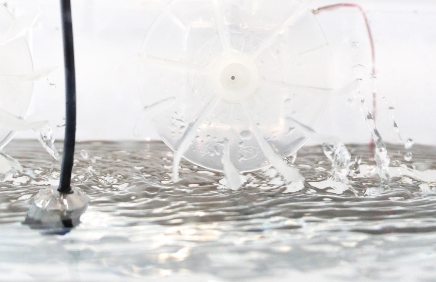 Waterscape is a sound sculpture by Lina Choi that produces water-like sounds through small motor-driven devices. Each element creates subtle drops and flows, forming an evolving, immersive sound environment.