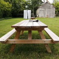 An outdoor picnic table provides the setting for listening on headphones to electroacoustic sound art works curated by NAISA from an international call for submissions on the theme Digital in Nature.