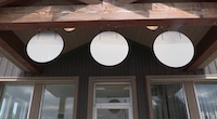 Gong Show is an outdoor sound installation at the NAISA North Media Arts Centre. It consists of a series of motion-controlled mechanically-activated aluminum disc gongs suspended in the support beams on front of the NAISA building. The gongs are activated by solenoid strikers triggered by an iPad running motion-tracking software. As people move within the iPad’s field of view, the software detects their movement and activates the solenoid strikers.