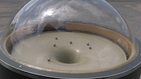 This outdoor installation created by Jesse Stewart and Matt Edwards features an interactive circular ball machine. Visitors are invited to turn a wheel on the side of the unit, which releases steel ball bearings that orbit its interior concave surface before disappearing down a central hole. The addition of contact microphones on the underside of the unit and signal processing enhances the sonic dimension of the piece.